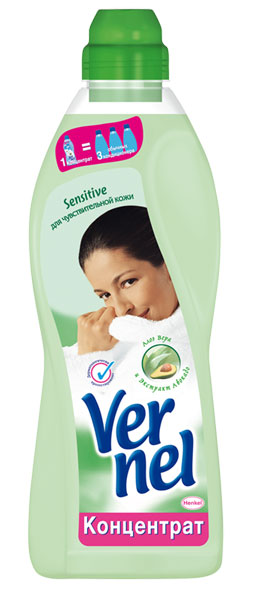 Компания «Хенкель» объявляет о запуске нового кондиционера для белья Vernel Sensitive с Алоэ Вера и Экстрактом Авокадо, разработанного специально для людей с чувствительной кожей.