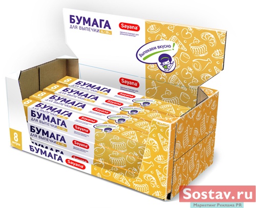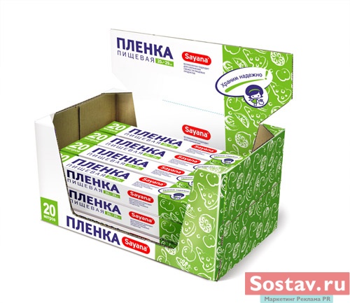 "Sayana" - современный бренд, включающий в себя фольгу, бумагу для выпечки, пищевую пленку и прочие сопутствующие продукты. "Локомотивом" стали пищевые контейнеры из фольги, в которых удобно хранить, замораживать, сервировать и разогревать пищу (т.ч. в микроволновой печи). Целевая аудитория - женщины 25-45лет, предпочитающие питаться здоровой пищей, но не тратить на это уйму времени. Ценовой сегмент - средний плюс.