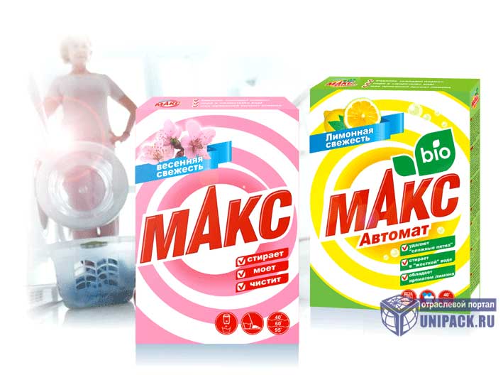 Обновленный «Макс» выпускается в нескольких форматах упаковки и популярных ароматических композициях - «лимон», «яблоко» и «весенняя свежесть». Продажи стирального порошка “Макс” в новом дизайне начались с октября 2007 года.