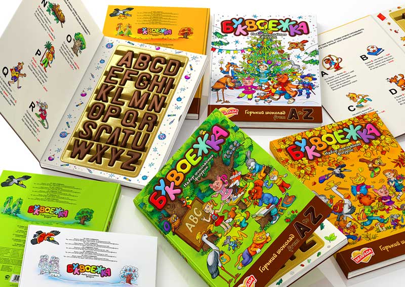 В студии Акима Мельника по заказу ООО «Сименон» был разработан дизан шоколадных конфет "Буквоежка".