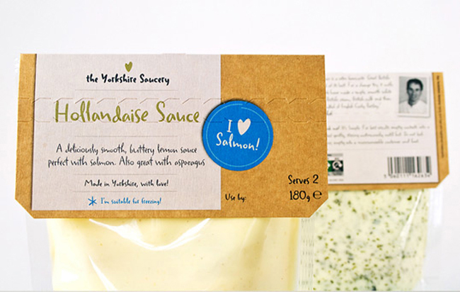 В британской студии Shark! Design & Marketing придумали бренд, а также разработали дизайн упаковки и вебсайт для новой линейки замороженных рыбных соусов Yorkshire Saucery. Торговая марка представлена исключительно в сетях ASDA.