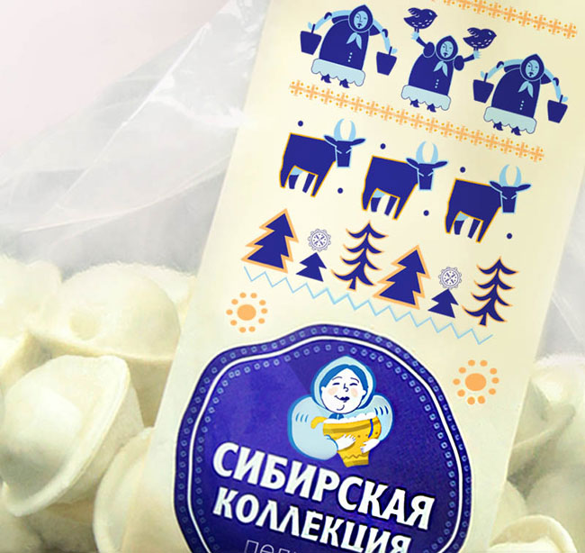 Частушки, лубок и резьба по дереву на новой упаковке пельменей "Сибирская Коллекция"
