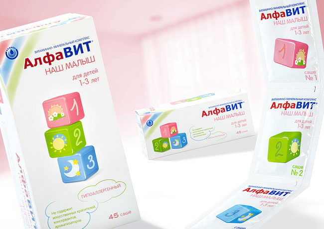 В мае в столичных аптеках появился новый комплекс витаминов «АЛФАВИТ» компании Аквион для детей 1-3 лет — «АЛФАВИТ Наш малыш». Дизайн упаковки был разработан агентством BQB.
