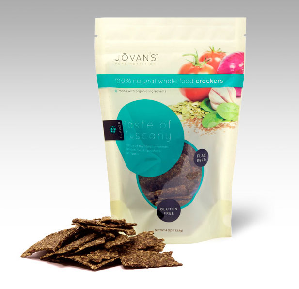 Перед специалистами студии Pivot lab стояла задача разработать дизайн для необычного продукта – овощных чипсов Jovan's Crackers. То, что требовалось от дизайнеров – это придать упаковке вид изысканный, ориентирующий на здоровую пищу, а также достойно представить продукт в категории снеков «премиум».