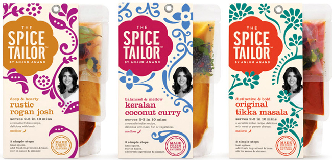 Новый бренд The Spice Tailor, выпускающий приправы и соусы от ведущей кулинарных телешоу и автора кулинарных книг Анджум Ананд (Anjum Anand), объявил о том, что его имидж был создан специалистами по стратегическому брендированию из агентства Pearlfisher, пишет