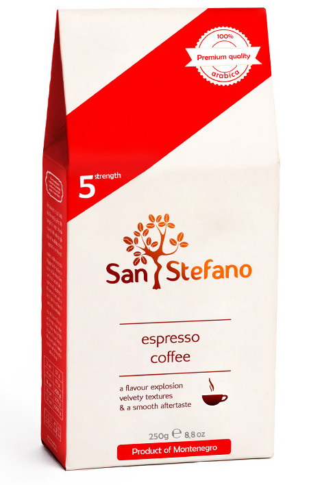 В продажу поступят 4 вида кофейных смесей из бразильской и кенийской арабики. Кроме того, у покупателей будет возможность приобрести цельнозерновой кофе. Кофе «Сан Стефано» обжаривается и фасуется в республике Черногория.