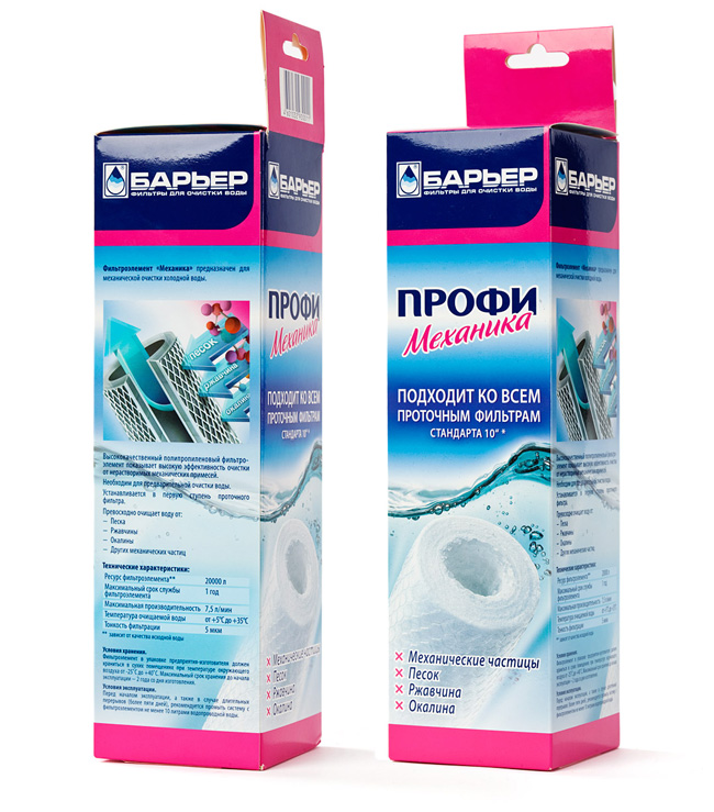 Компания "МЕТТЭМ-Технологии", владелец ТМ "Барьер", представила новую упаковку. До недавнего времени сменные картриджи для проточных водоочистителей "Барьер Профи" продавались в прозрачной упаковке с небольшой этикеткой, на которой с трудом можно было разобрать марку "Барьер" и параметры конкретного картриджа. Между тем, владельцам проточных фильтров (а фильтроэлементы "Барьер Профи" подходят к водоочистителям любых марок) важно быстро и без проблем считывать назначение сменного картриджа, удовлетворяющего именно их потребностям в чистой воде.