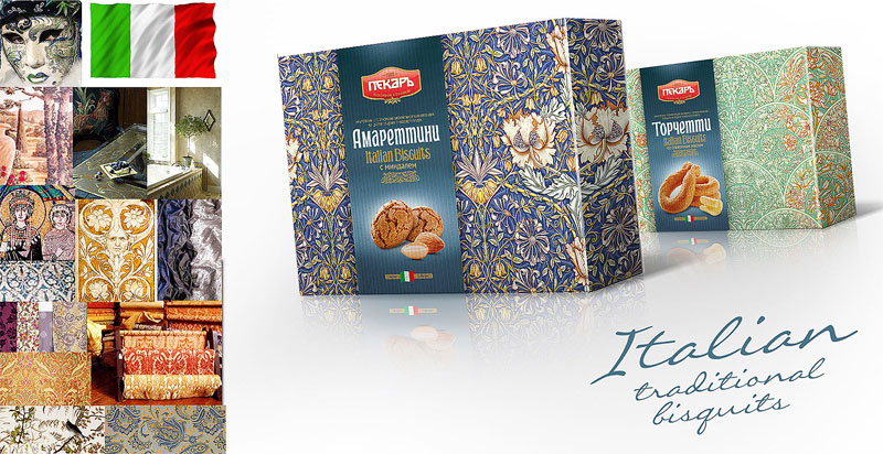 Новое предложение от бренда Пекарь - это коллекция традиционной европейской выпечки, в которой представлены интересные формы и виды печенья, популярные в разных странах Европы. Первый этап запуска марки был осуществлен с двумя коллекциями: итальянской и датской. Основой визуальной концепции линейки стал стиль модерн, отражающий богатую историю бренда Пекарь, культурные ценности северной столицы и создающий премиальный имидж бренда.