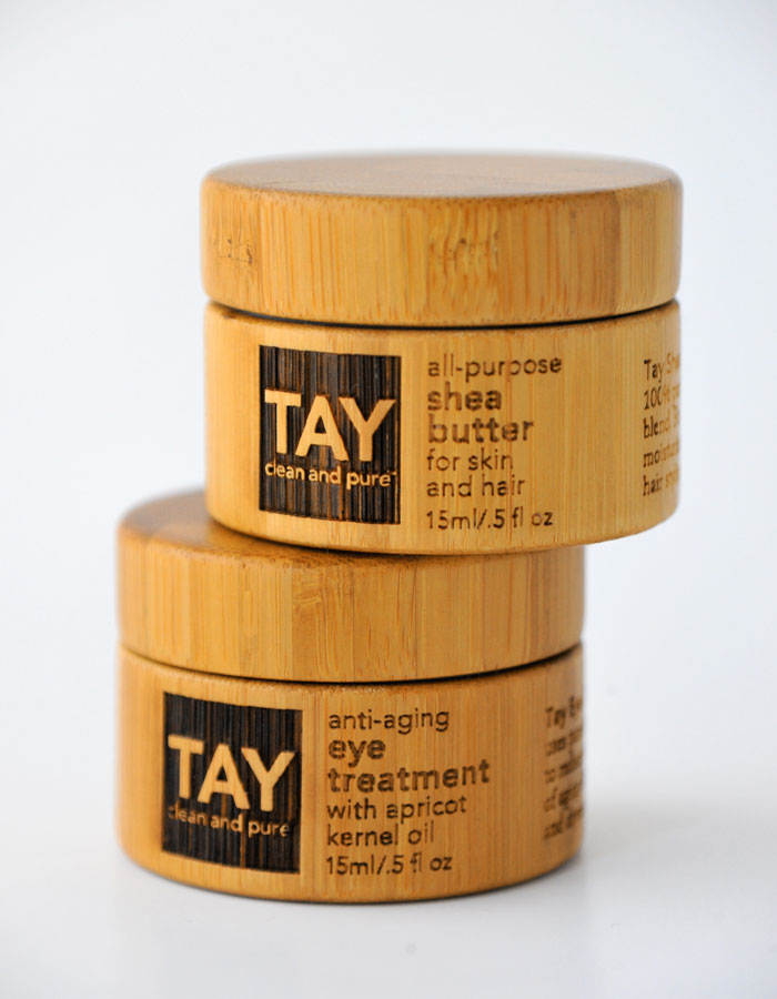 Американская косметическая компания TAY представила линейку, состоящую из восьми наименований, в которую вошли крема, мыло, увлажняющие средства. Косметика примечательна своей упаковкой, сделанной из бамбука.