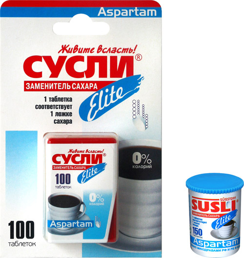 В целях развития ассортимента заменителей в таблетках в 2001 году была введена линейка под т.м. «СуслиElite». По причине смены производителя компания решила изменить одновременно дизайн упаковки для «СуслиElite».