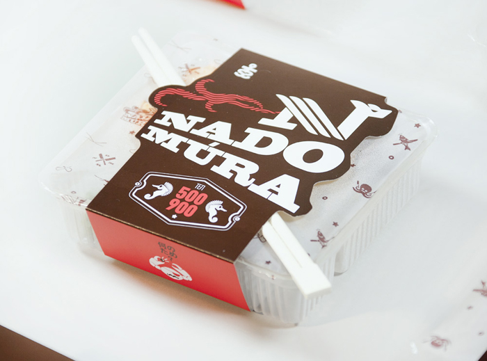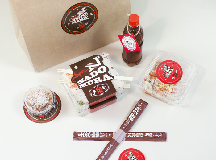В PUNK YOU был разработан яркий, хулиганский фирменный стиль. Он подчеркивает основной козырь бренда — инновационная технология упаковывания сохраняет суши в процессе доставки настолько хорошо, что они остаются максимально свежими. Настолько свежими, что… оказываются практически живыми! Живые рыбки, осьминоги и крабы гуляют по упаковкам, карточкам и меню. Рыбки, как и полагается всем рыбкам, даже кричат «За что?». У дракона в виде литеры N — вырывается реактивное пламя. Потому что NADOMÚRA — еще и очень быстрая доставка.