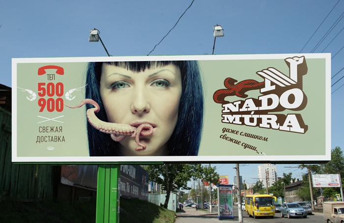 Реклама с девушкой, поедающей живого осьминога, конечно, привлекает внимание, но вот попробовать продукцию этой фирмы никак не сподвигает: а вдруг там, в суши, тоже что-то живое окажется?)
