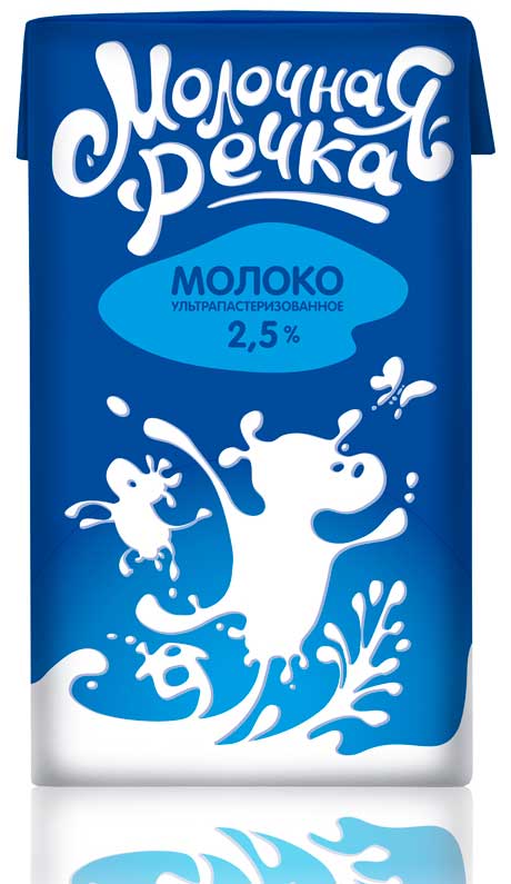 Само название натолкнуло креативную группу агентства на решение в дизайне: «Молочная речка», кисельные берега и зажигающе пляшущие коровы из молока. Развитие этого сюжета нашло свое продолжение в дизайне серии для ультрапастеризованного молока в упаковке Tetra Pak и других молочных продуктов.
