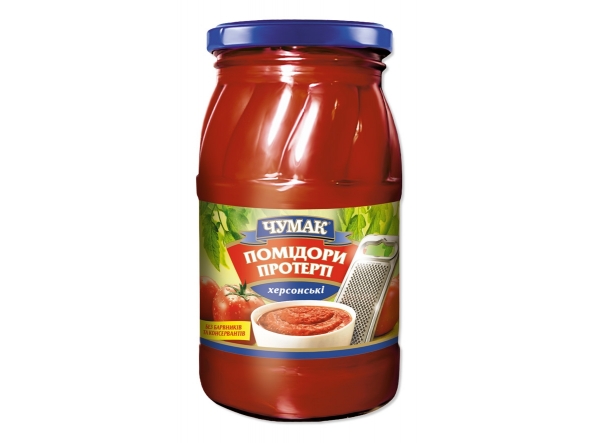 Компания "Чумак" (Украина) представляет новинку - протертые томаты. Продукт изготавливается из помидоров, выращенных на херсонских полях. Томаты фасуются в стеклянную банку 360 гр.
