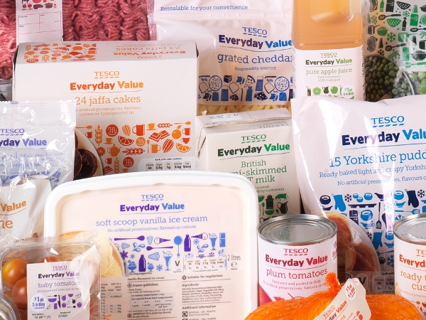 Бренд, существовавший почти 20 лет под названием Tesco Value переименован в Everyday Value. Дизайн упаковки для ТМ, состоящей из 550 товарных позиций, разработан лондонской студией Rocket Design. Старый дизайн в бело-синюю полоску сменил более современный и красочный.