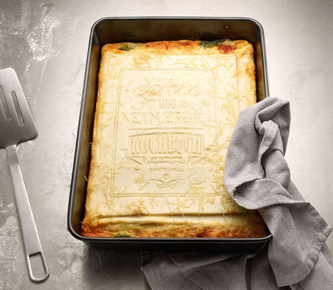 Cookbook состоит из 100% свежего теста для пасты. «Поваренную книгу» можно разделить на листы, добавить ингредиенты и приготовить. Паста упакована как классическая лазанья.