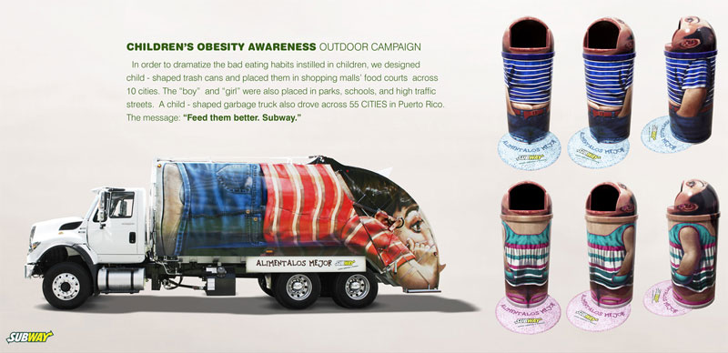 Также, в 55 городах страны курсировали мусороуборочные машины, оформленные в таком же стиле. Проходила кампания под слоганом «Кормите их правильно. Subway».