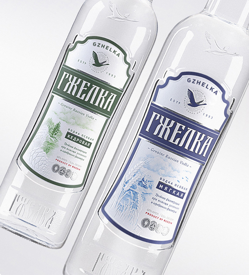 Агентство STUDIOIN обновило водочный бренд «Гжелка». При редизайне упаковки форма бутылки не изменилась.