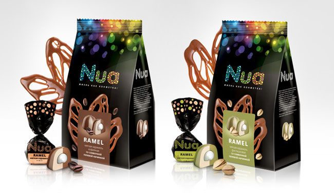 В процессе работы над брендом компанией Shemanoff были проведены качественные исследования с представителями потенциальной целевой аудитории, была разработана стратегия бренда, разработаны название «Nua» и слоган «Жизнь как конфетка», дизайн упаковки 8 линеек продукции, фирменный стиль, а также дизайн каталога и фирменного календаря.