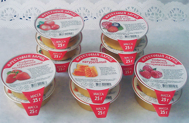Здесь расфасовывают собственного производства нестерелизованные конфитюры следующих наименований: "Клубничный", "Малиновый", "Клюквенный", "Лесная ягода", а также новый продукт - натуральный мед.