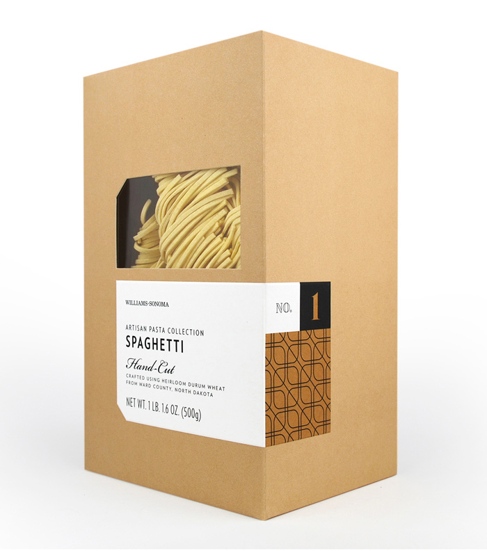 В рамках создания семейства новых продуктов в магазинах Williams-Sonoma, данная упаковка задумывалась как современная интерпретация простой и классической упаковки макарон. Задачей дизайнеров было заставить потребителя почувствовать домашний характер продукта и уникальность муки из твердых сортов пшеницы, используемой для приготовления домашней пасты.
