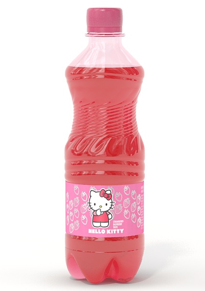 Hello Kitty представлен в торговых точках в трех упаковках – ПЭТ-бутылках 0,5 л., 1 л. и 1,5 л.