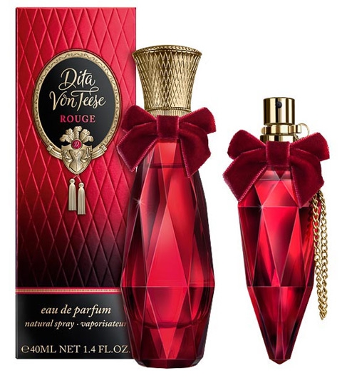 В дизайне флакона и упаковки аромата Дита Фон Тиз воплотила свою любовь к бурлеску, будуарному стилю и винтажу. Флакон красного цвета с гранями в духе 1920-х годов дополнен бархатным бантом, а коробочка одним своим видом намекает на то, что внутри скрывается парфюм для страстных и смелых натур. Аромат Rouge от Диты Фон Тиз появится впродаже в концентрации Eau de Parfum в объемах 20 и 40 мл. Сопутствующая линейка средств красоты будет представлена лосьоном для тела и гелем для душа.