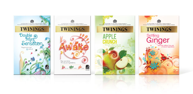 В рамках обновления бренда, Twinings выпустила совершенно новую линейку, представляющую чайные смеси с оригинальными ингредиентами. Отличительным признаком новой линейки стало изображение с замысловатой техникой квилинга.