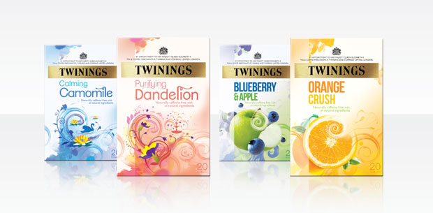Принимая во внимание быстро растущий рынок травяных и фруктовых чаев Великобритании, который в настоящий момент оценивается в 44 млн. фунтов стерлингов, компания Twinings обратилась в агентство BrandOpus с задачей упростить и изменить архитектуру и упаковочный дизайн обширного портфолио ТМ Infusions с целью увеличить долю компании в данной категории. Специалисты агентства разработали единую чистую, белую основу для всех четырех линеек бренда. На упаковке каждой смеси изображено завихрение, представляющее момент погружения чая в горячую воду.