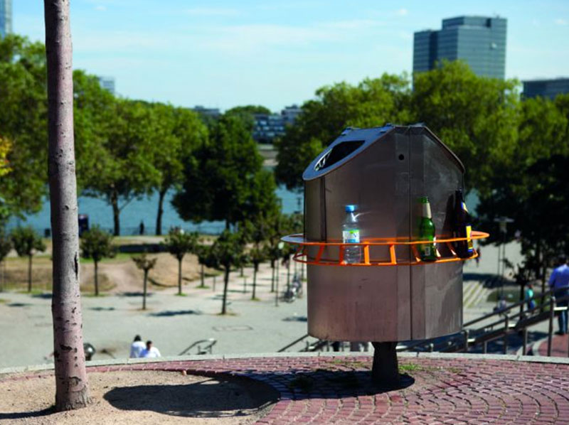 Одним из победителей конкурса стал Пауль Кетц (Paul Ketz), ecosign/Akademie für Gestaltung, представивший так называемое «кольцо залога» (Pfandring). Это кольцо представляет собой дополнительный держатель для мусорных баков в общественных местах. В него помещаются бутылки и банки, за которые взимается залог, то есть многоразовая тара. Прохожие могут поставить пустую бутылку в держатель, а сборщикам залоговой тары не придется копаться в мусорном баке. Бутылки и банки остаются в кругообороте рециклинга. Оформление кольца функционально, а цвет обращает на себя внимание. По мнению жюри, пустая бутылка благодаря «кольцу залога» становится подарком тем, кому она действительно нужна. Проблема решена с помощью простого дизайна. Члены жюри даже назвали это изделие «обручальным кольцом» экологии и социальной сферы.