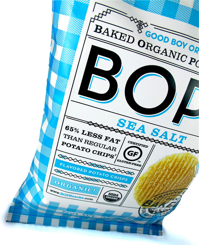 По заказу американского производителя Integrated Organics, в нью-йоркской студии A3 DESIGN разработан дизайн упаковки для печеных чипсов BOPS. Дизайн призван напоминать о лете и семейных пикниках.