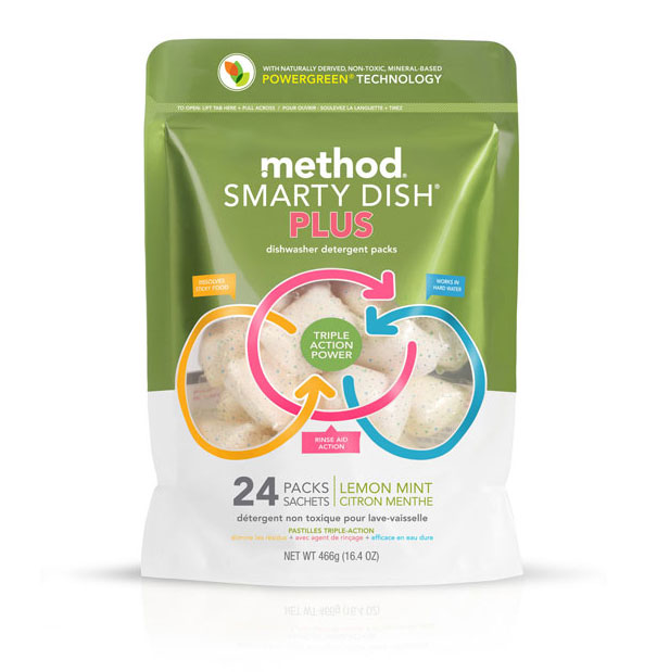 Производитель экологически-чистых моющих средств Method (США) выпустил новый продукт – очищающее средство для посудомоечных машин тройного действия Smarty Dish Plus.