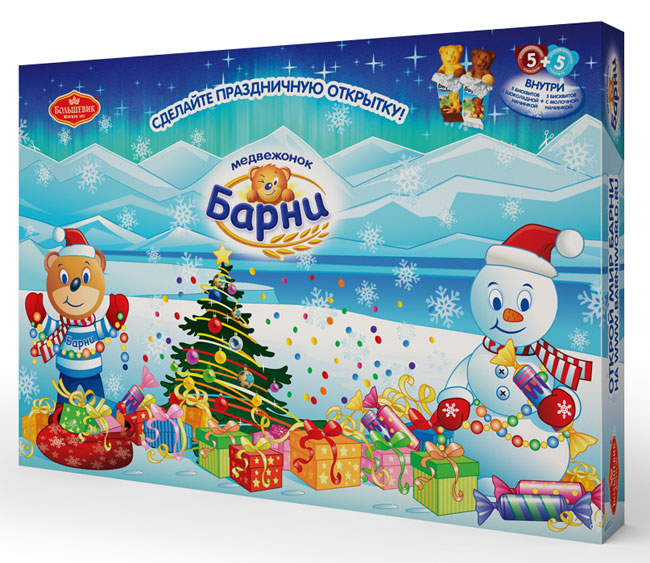 К Новому году компания Крафт Фудс Рус выпустила набор из двух порций лакомства «Медвежонок Барни» в праздничной упаковке, из которой можно смастерить поздравительную открытку.