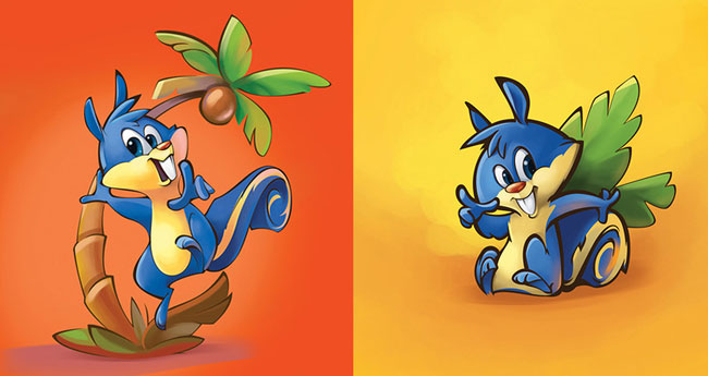 Разработкой этикетки продукта занималось брендинговое агентство Idea Brand (Владивосток). При создании логотипа торговой марки был сделан упор не только на позиционирование, но и на создаваемый названием фоносемантический образ. В линейке представлены три вкуса: манго, персик и тропик, для которых были созданы персонажи — семья белок — папа, мама и ребенок. Персонажи веселые, привлекательные и узнаваемые, они поддерживают дифференциацию упаковки по вкусам и выделяют продукцию среди торговых марок того же сегмента, однако не делают дизайн этикетки детским, оставляя продукт привлекательным для молодежи и даже более взрослой аудитории.