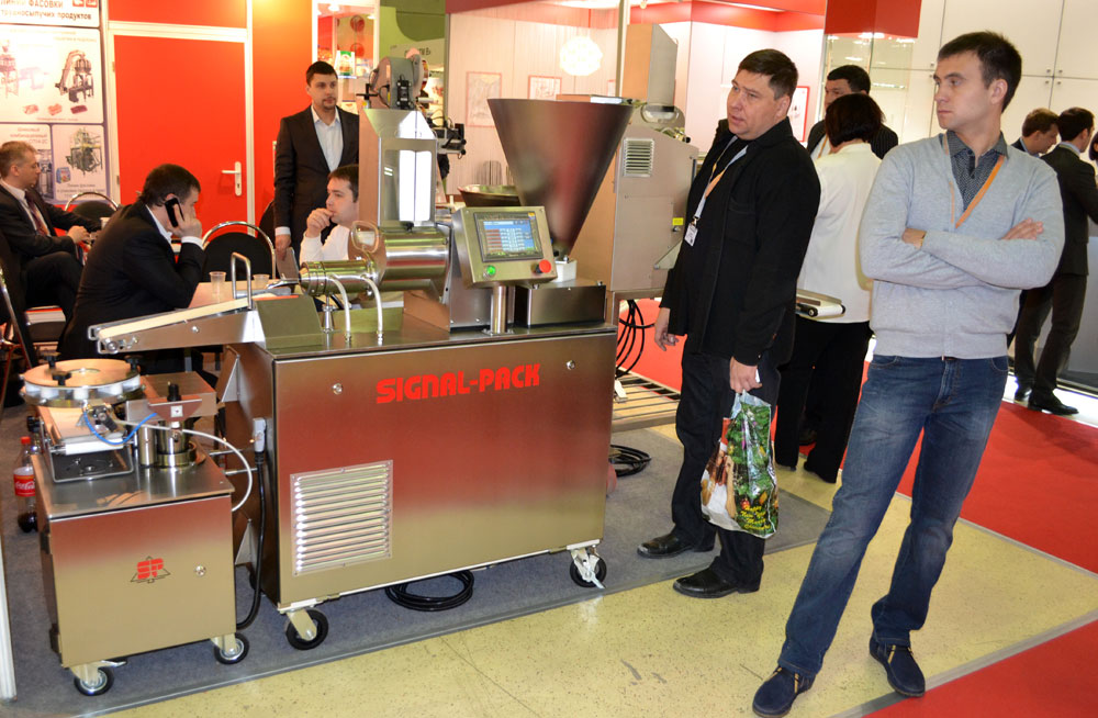 Компания «Сигнал-Пак» представила на выставке «Упаковка/УпакИталия-2013» пельменный автомат «Экстро». Производительность автомата – до 250 кг/час.