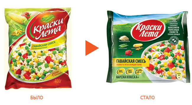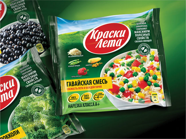 Брендинговое агентство Runway Branding завершило редизайн упаковки замороженных продуктов торговой марки “Краски лета”. Редизайн связан с репозиционированием марки, лейтмотивом которого является подтверждение того факта, что после “шоковой заморозки” продукт сохраняет максимум полезных свойств свежих овощей.