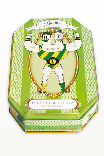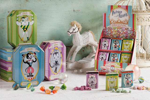 Фабрика «Пастилье Леоне» известна с 1875 года. В компании решили выпустить три популярных, классических вкуса в оригинальной упаковке. Дизайнеры LibellulArt остановили свой выбор на жестяных коробках двух размеров: карманный вариант и вариант «макси». Были выбраны три персонажа. Темой дизайна стал цирк XIX века, иллюстрации созданы в стиле американского мультфильма 30-ых.