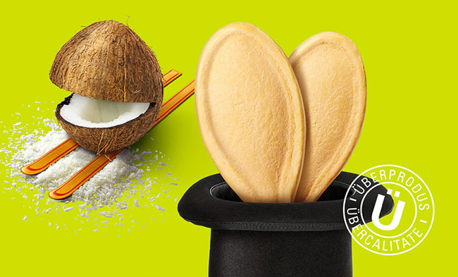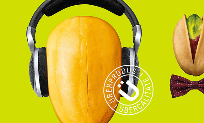 В названии Übernuts использовано немецкое слово ‘über’, которое хорошо известно как в английском, так и в румынском и означает «чрезмерный, отличный, супер». Многозначность слова ‘nuts’ (пер: орехи, чудак, энтузиаст и др.) добавляет бренду шарм и нацеливает его преимущественно на молодую аудиторию. Шрифт добавляет наивность и эксцентричность.