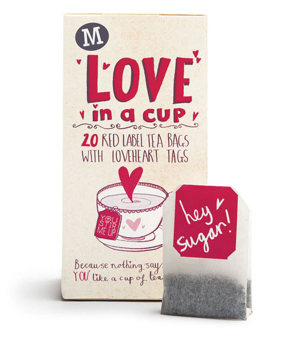 Британская сеть супермаркетов Morrisons выпустила под собственной торговой маркой ограниченную партию чая «Love in a cup». Новинка призвана стать забавным и оригинальным подарком для влюбленных. Дизайн упаковки разработан в британском филиале международного агентства Elmwood.