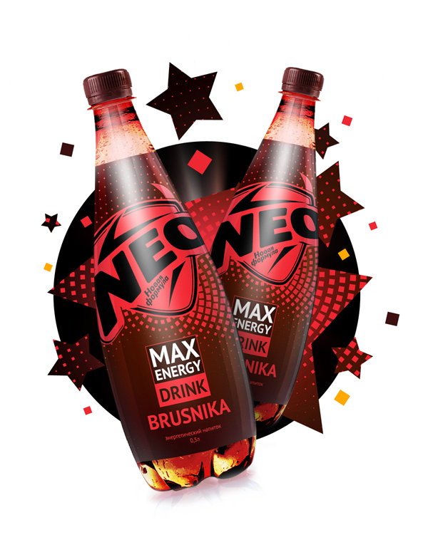 Полки магазинов Дальнего Востока богаты напитками различных вкусов. В связи с этим, группе компаний «Аква Групп» для вывода новой серии напитков NEO — «Мохито» и брусничный энергетик — потребовалось создание оригинального дизайна логотипа и этикетки, который был бы способен заинтересовать определенный сегмент потребителей и выделить продукт среди конкурентов в точках продаж.