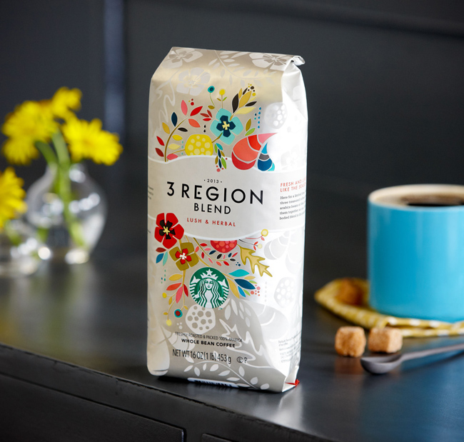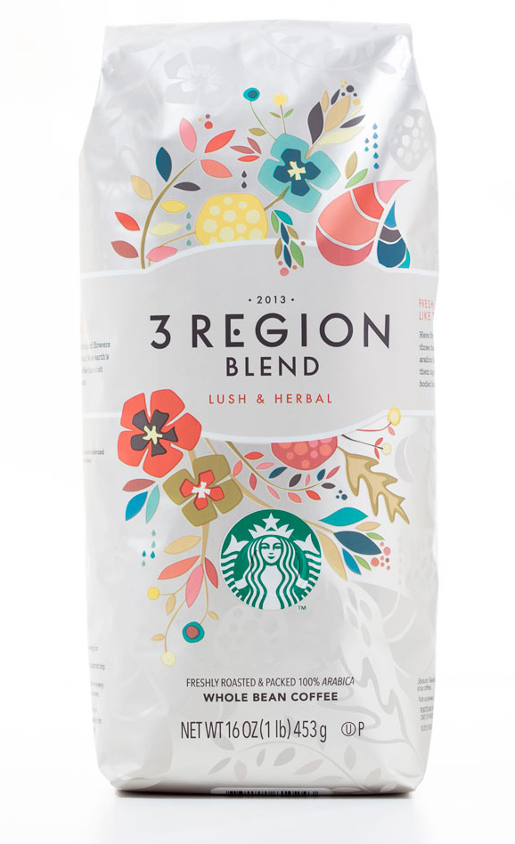 Сеть кофеен Starbucks выпустила кофейный бленд 3 Region Blend в обновленном дизайне упаковки, который разрабатывался в студии Starbucks Global Creative Studio.