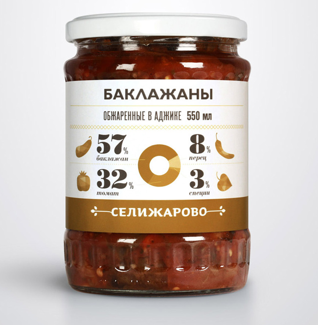 Консервы — они почти как люди. Их тоже очень украшает честность. Так решили в агентстве и сделали для компании Селижарово абсолютно правдивые этикетки. В них — все, что покупатель хотел бы знать о продукции, но боялись прочитать. К примеру, компот из яблок и смородины. Сколько здесь ягод, а сколько — фруктов? Или баклажаны в аджике. Каков процент перцев в банке? Теперь нет нужды вчитываться в мелкий шрифт на обороте банке — ясная инфографика точно и честно пояснит даже самым дотошным покупателям, что (и в каких количествах) стоит за прекрасным вкусом продуктовой линейки марки.