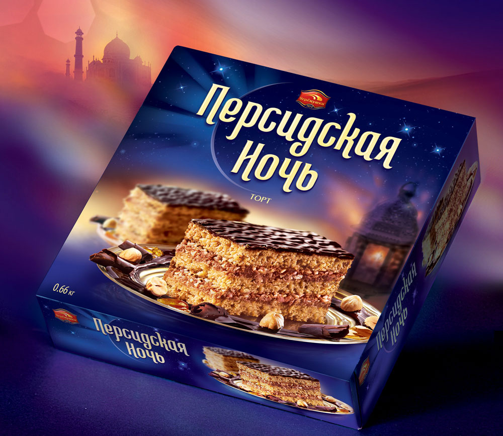 Новый дизайн упаковки торта ТМ “Персидская ночь” разработан брендинговым агентством RUNWAY BRANDING.