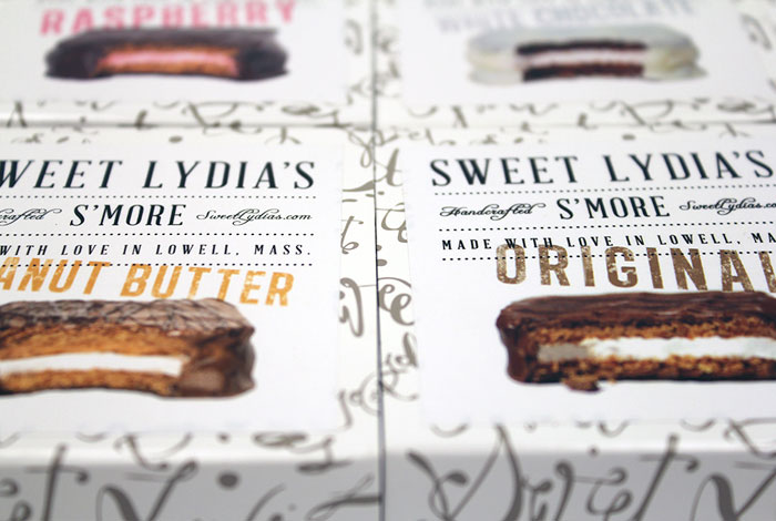 S'mores (пер: еще немного) – традиционное американское лакомство, вид сэндвича, состоящего из поджаренного зефира, прослойки шоколада между двумя кусочками пшеничного печенья. Компания Sweet Lydia обратилась в агентство Worst of All Design с задачей разработать новый дизайн упаковки. Дизайнерам удалось создать высококачественный дизайн, оставляющий ощущение ручной работы.