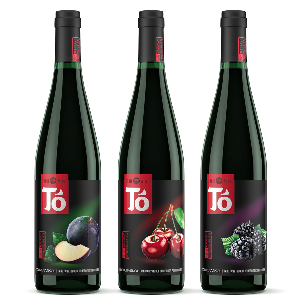 Дизайн "ТО" обыгрывает японскую тему не только в названии, но и в необычном сочетании цветов, традиционном для Японии. Яркий красный логотип на зелёном фоне бутылки выделяет продукт из общего ряда плодовых вин на полке. Блеск ягод и сочные краски привлекают внимание, а информативная этикетка подсказывает покупателю, какой вкус сегодня выбрать.