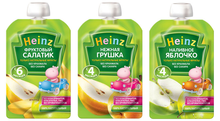 Компания Heinz запустила в России пюре в новой упаковке - пауч, благодаря которой малыш сам сможет кушать любимые фруктовые пюре.