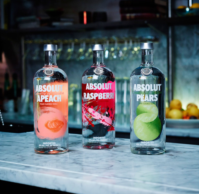Линейка с новым дизайном Flavours включает в себя: Absolut Apeach, Absolut Pears, Absolut Raspberri, Absolut Vanilia, Absolut Mango, Absolut Ruby Red, Absolut Berri Açaí, Absolut Äpple, Absolut Cherrys, Absolut Gräpe, Absolut Wild Tea и Absolut Cilantro. В прошлом году ABSOLUT представил новый дизайн таких классических продуктов, как Absolut Peppar, Absolut Citron, Absolut Kurant и Absolut Mandrin.
