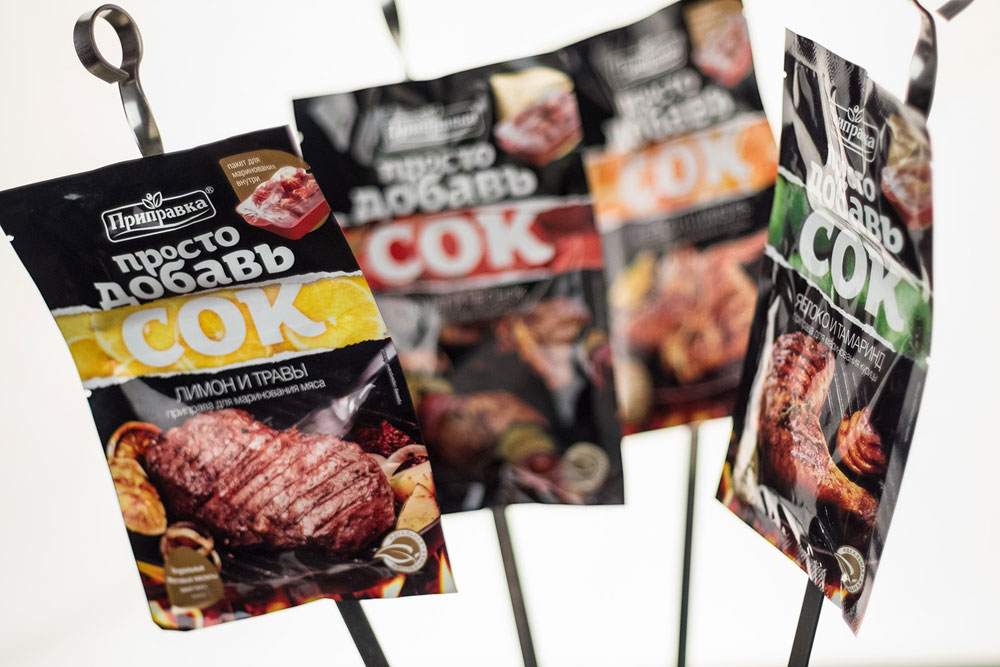 ТМ «Приправка» (Украина) выпустила на рынок уникальный для категории продукт - маринады для мяса «Просто добавь сок». В украинском агентстве Arriba! сделали уникальный для категории дизайн.