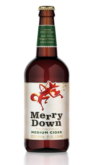 Дэн Кимминс (Dan Kimmins), руководитель отдела дизайна Ziggurat, сказал: «Потребительское исследование показало, что бренд характеризуется как веселый и беззаботный. Поэтому мы решили выделить эти составляющие в новом дизайне. Merrydown – это относительно молодая компания со своеобразной историей, существующая на рынке бок о бок с компаниями, которыми 300-400 лет. Мы решили сделать дизайн юмористичным и непочтительным».