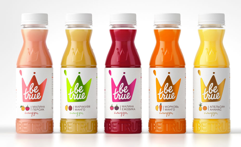 Не имеющие собственного лица, смузи BE TRUE заимствовали его у европейских прообразов. Перед дизайнерами STUDIOIN стояла задача отойти от дизайна, копирующего мировой бренд, и разработать оригинальный образ продукта.